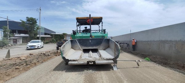 該項目為期60天,建設內容涵蓋道路、排水、給水、照明及綠化等多個方面,其中道路工程由山西科坤建筑工程有限公司承建。施工現場全程嚴格按照國家道路建設標準進行,主要施工環節為水穩層攤鋪與壓實。作業期間,山推SPF82-G攤鋪機與一臺輪胎壓路機、一臺單鋼輪壓路機協同配合,高效完成了當前階段的水穩層施工任務。