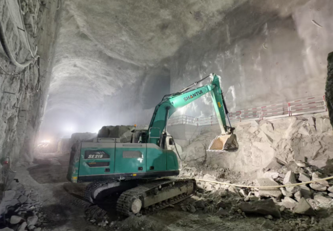 據(jù)介紹,該工程項目位于山東省中部,是國家規(guī)劃建設(shè)的重大能源基礎(chǔ)設(shè)施項目,總投資逾100億元,需開挖水道系統(tǒng)工程隧道2000米以上,以及引水系統(tǒng)斜井等高難度施工作業(yè),地理環(huán)境多變,特別是隧道內(nèi)施工,面臨著空間狹小、粉塵、潮濕等諸多挑戰(zhàn)。“隧道內(nèi)施工,對挖掘機的通過性、操縱靈活性要求極高,這臺山推215電動挖掘機,日常操作動作順暢,連貫性強,尤其適合長時間高強度作業(yè),幾乎無動力衰減,而且不需要更換濾網(wǎng)濾芯,即使環(huán)境惡劣也不怕,用著不僅省錢還省心。”挖掘機操作手說道。