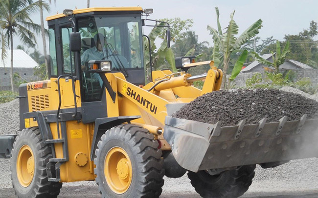 山推裝載機等工作于某采石場,山推裝載機工作效率高、油耗低,動力強勁、挖掘力大,動作響應快捷、靈活,適應場地能力強。收到客戶的一致好評。