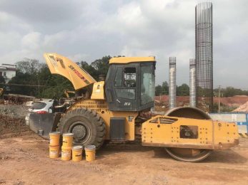 1、將壓路機停靠到水平路面上(圖1),便于發動機機油排放徹底;